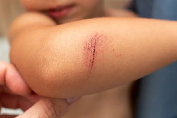 My arm got scraped and I cried. I had to go to the office for a bandage.